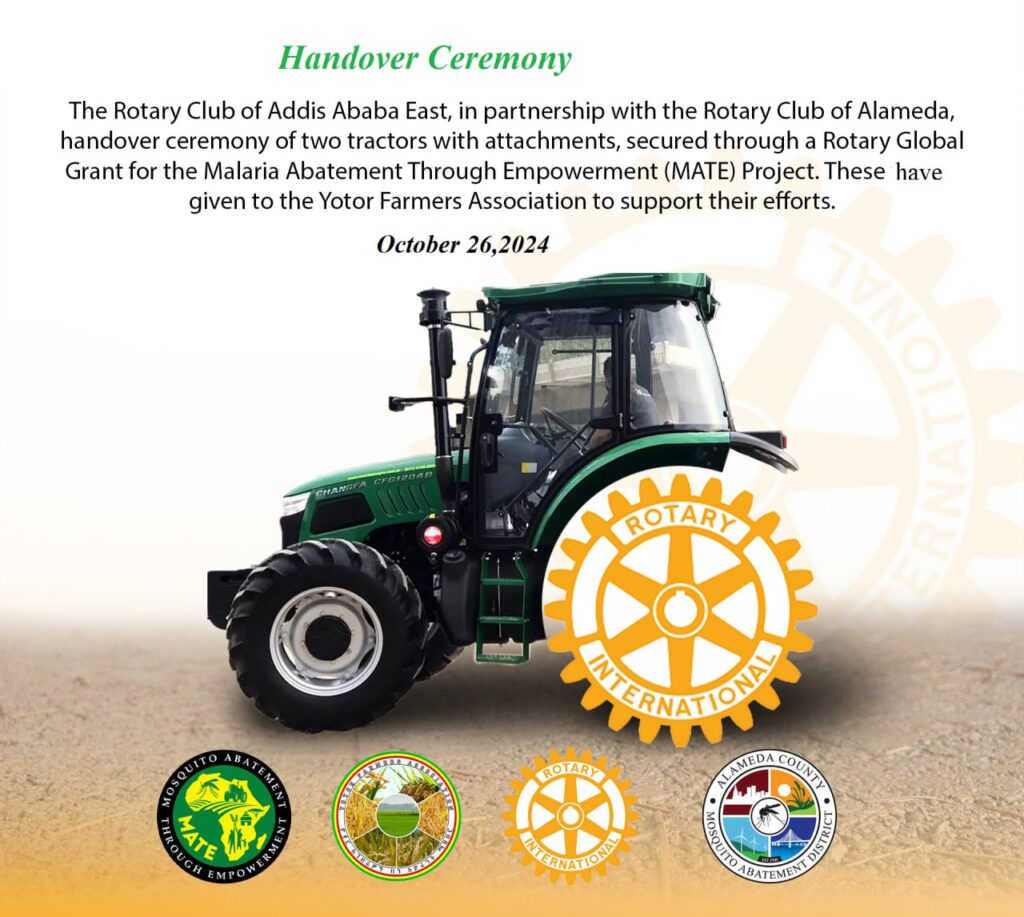Recently, Rotary International donated two tractors to this community project, with the first tractor delivered to Debre Markos University just one week ago. This collaboration represents a significant advance towards improving agricultural productivity and combating mosquito-borne diseases in the region.